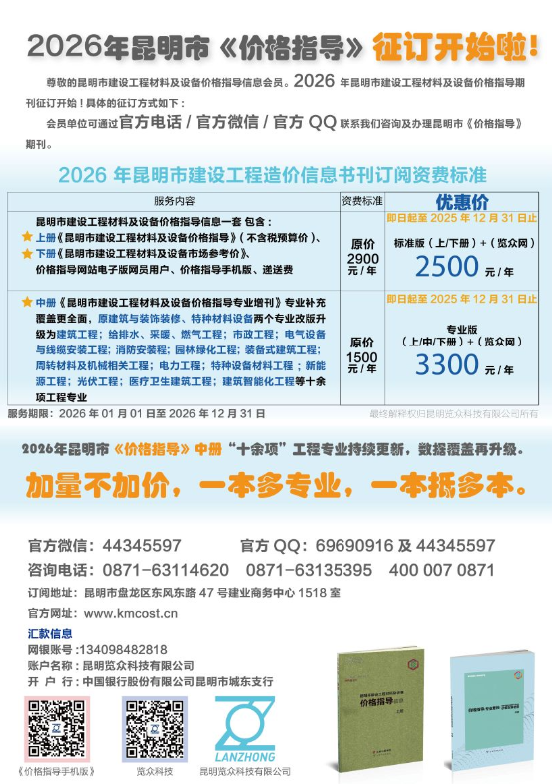 昆明市2025 年第三季度主要工程材料市场价格分析