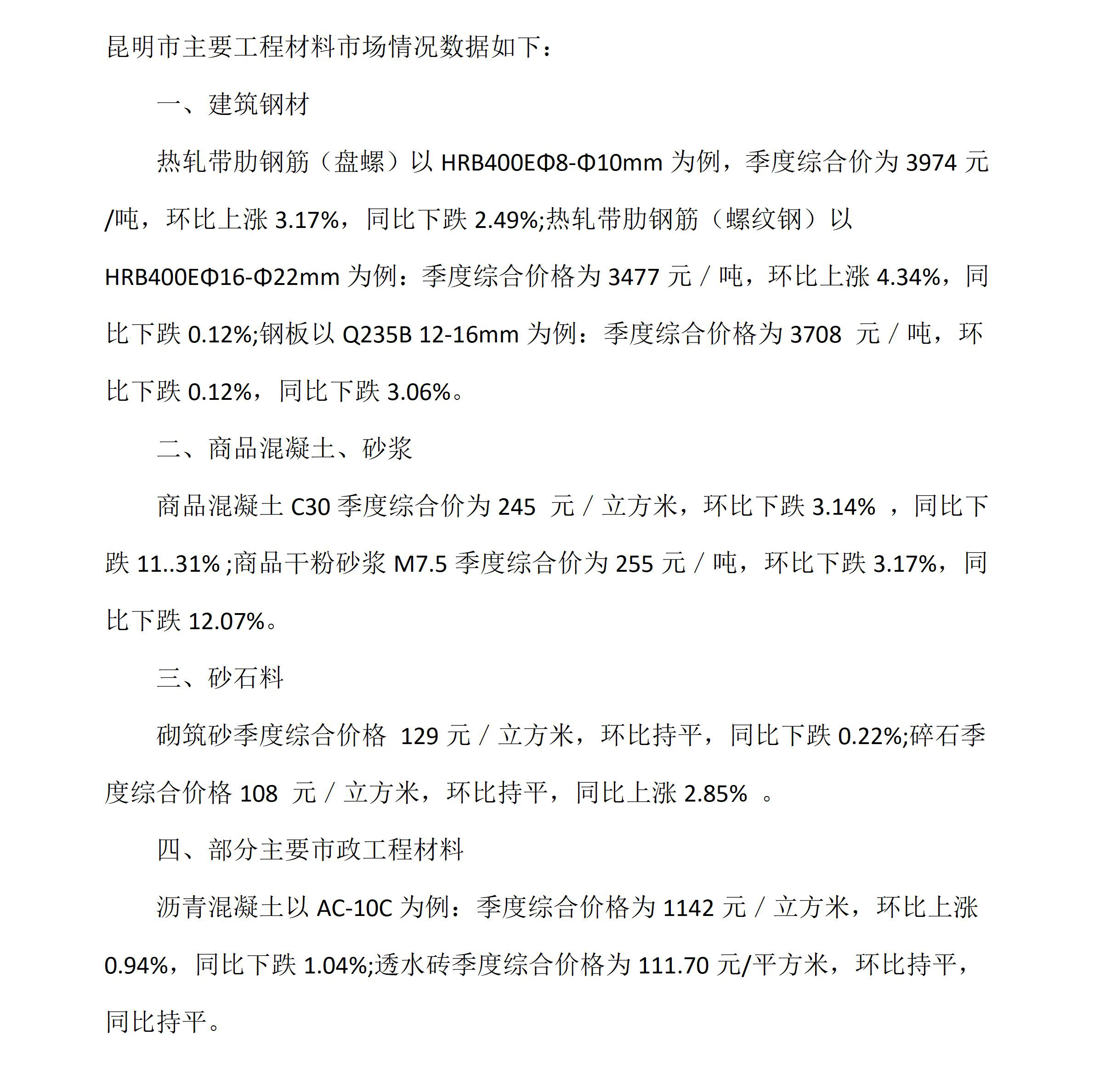 关于昆明市建设工程造价信息价格指导除税情况说明