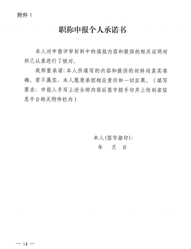 附件1:职称申报个人承诺书