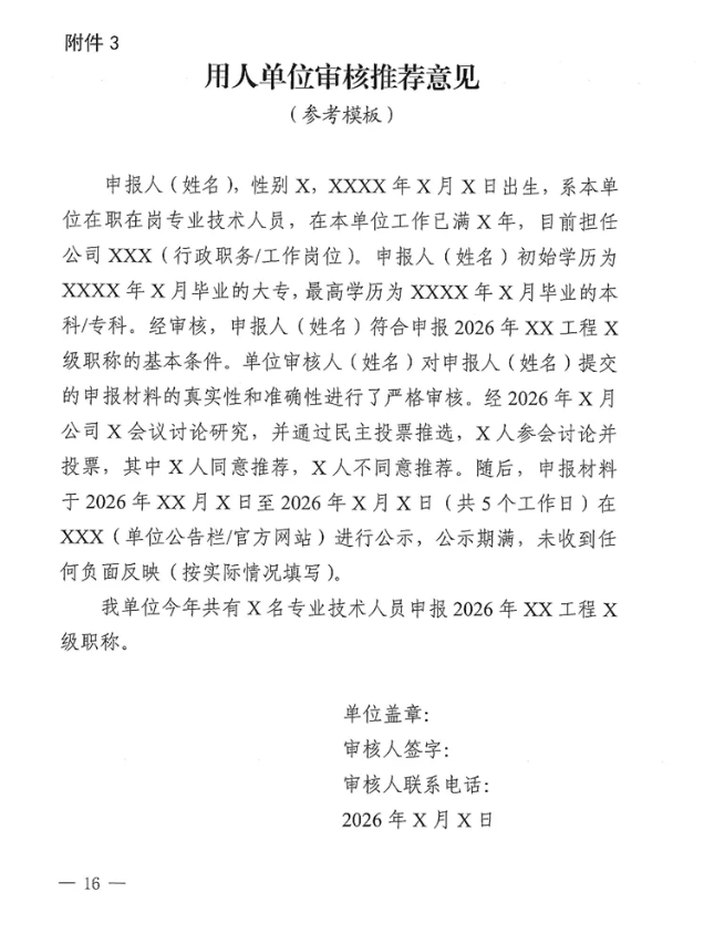 附件3:用人单位审核推荐意见